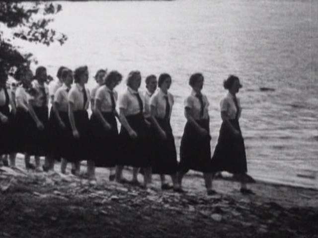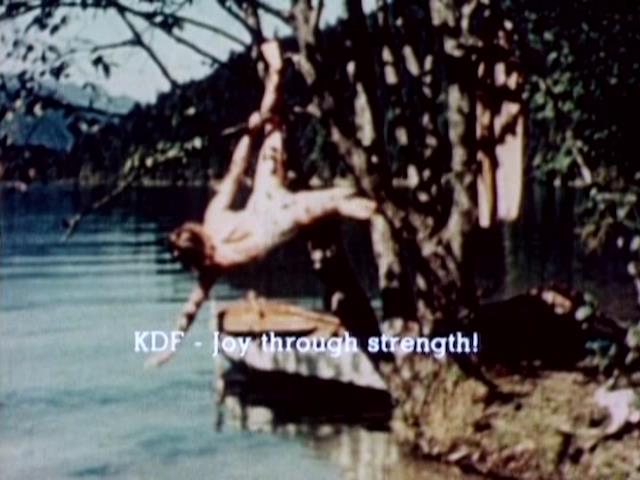 Mora’s choice and juxtaposition of Nazi-approved images is striking in their combined thematic weight. As the doc grinds on, we begin to see how utterly obsessive was the compulsion of the Nazis to manufacture—to the German public and the world—a phony image of the New Reich. Triumph of the will, indeed, as Goebbels regulated all cinematic documented images of Germany, constructing a (socialist—you listening out there?) fantasy world of strapping, handsome, happy men bending to plow and shovel (even the poets have to dig a ditch), and strong, healthy, flexible Rhine maidens, riding horses off into foggy woods and “Seig Heil-ing” themselves silly, until they were called upon to bear large, peasant Aryan broods for the greater good of the Fatherland.