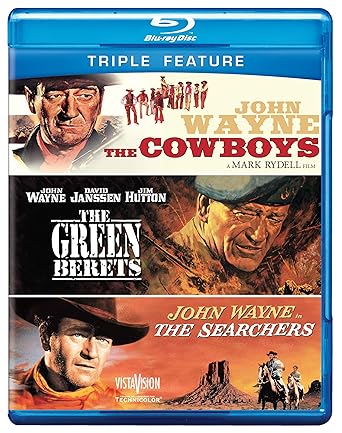 Available on various Warner Bros. Blu-ray discs (I’m a particular fan of the triple feature including it with The Green Berets and The Searchers), The Cowboys, written by Irving Ravetch and Harriet Frank, Jr., and directed by Mark Rydell, was a huge late career hit for the Duke, John Wayne, and one of his personal favorites. Filled with exciting adventure, gentle humor, and most importantly, a moral worthy of the best Western fables, The Cowboys allowed Wayne to give yet another deceptively simple but technically complex performance, lending The Cowboys an emotional gravity it would never have had, had Rydell not eventually relented on casting him in the part (liberal Rydell hated his politics…and wound up loving Wayne). It’s required viewing for Wayne and Western fans.