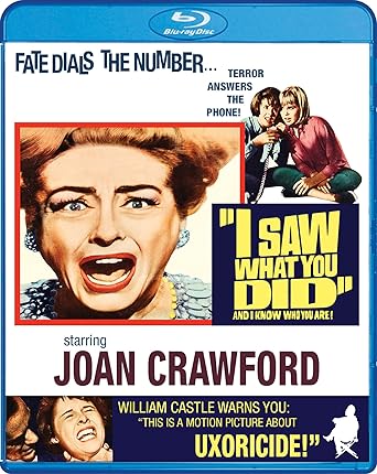 It probably seemed like a natural for producer/director William Castle to follow up his big 1964 drive-in hit, Strait-Jacket with another violent, gory Joan Crawford horror pic. After all, Crawford’s turn in Robert Aldrich’s seminal 1962 Grand Guignol, What Ever Happened to Baby Jane?, had brought Crawford and co-star Bette Davis back from almost total obscurity, remaking them both as proven “names” in the horror exploitation market. However, I Saw What You Did was originally designed strictly as a “teen” outing, with Crawford’s “Amy Nelson” character being quite incidental to the main story.