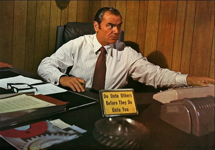 As for Borgnine…what can one say, other than his turn here is a masterwork of sly manipulation, seething rage, and hilarious grotesqueness. No one could enthuse on the screen like Borgnine, regardless of the context, and here, he’s palpably nauseating in his boorish enthusiasm, whether sticking his hand down Joan Shawlee’s ample cleavage (“I was doin’ the old bag a favor,” he croaks), or coldly, viciously browbeating Willard in front of the other employees, or stuffing his face to overflowing during Lanchester’s funeral, proclaiming with a wild, bug-eyed, open mouth smile, “This is just like a picnic!” It’s a bravura performance, one that should have garnered him a Supporting Actor nod from the Academy Awards that year, and one probably scarier—and certainly funnier—than any of Willard’s rats (he’s a hellava lot more memorable than say…Roy Scheider was, in his strictly sidekick The French Connection-nominated turn that year).