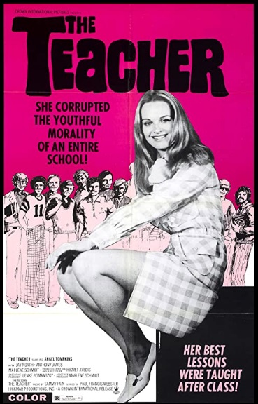 When that hack Tarantino made his grindhouse “hommage” a few years ago (his tenth and final rip-off can’t come soon enough), the late, lamented BCI released Welcome to the Grindhouse Double Feature: The Teacher and Pick-Up, a nostalgic trip back to 1970s exploitation fare, complete with coming attraction bumpers and trailers for The Hellcats, The Pom-Pom Girls, Weekend with The Babysitter, Van Nuys Blvd., and The Wild Riders. “Welcome to the Grindhouse” is certainly a misnomer, though; these relatively tame exploiters found acceptance at local drive-ins and even first-run houses more than urban grindhouses, where hard-core audiences expected X-rated skin and gore. You won’t find anything like that in The Teacher and Pick-Up, which barely earned their “R” ratings back then. But for anyone who remembers those great times at your local backwoods drive-in (thank you, creepy older brothers, for spiriting me along), Welcome to the Grindhouse Double Feature: Pick-Up and The Teacher should be a potent dose of old timey exploitation. For this review, let’s take a look at The Teacher. (You can find my review for Pick-Up here.)