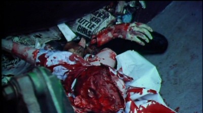 Still…there are some surprisingly effective moments in Terror that almost redeem it. McGillivray’s sense of humor comes through occasionally, with Gary getting a solid laugh when the movie-within-a-movie ends and he promptly opines, “What a load of rubbish.” The whole soft-core “Bathtime with Brenda” is quite amusing, too, with its cynical look at the decidedly unromantic aspects of grungy low-budget filmmaking (I love the unenthusiastic, uninspired cries of “passion” that Peter Attard and Tricia Walsh summon up for each other as they unconvincingly try to simulate sex in a tub).