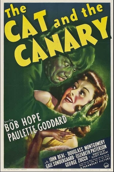 Descending into my subterranean DVD vault (anyone tired of this gag yet?), I blah blah blah 40 fathoms below the earth’s crust blah blah blah electric tram rail blah blah blah northwest wing, substation A12 blah blah blah corridor 40, vault 69 blah blah blah and came up with a suitably restorative draft of All Hallow’s Eve spookums: 1939’s The Cat and the Canary and 1940’s The Ghost Breakers, a Bob Hope laffer/chiller double feature from Universal’s Bob Hope: Thanks for the Memories Collection. Hope’s sly, wisecrackin’ scaredy cat persona works particularly well in the horror genre (it’s surprising he didn’t do more of them), so let’s look briefly at these two vintage Paramount Pictures gems…before my vodka-and-candy corn diabetic coma kicks in.