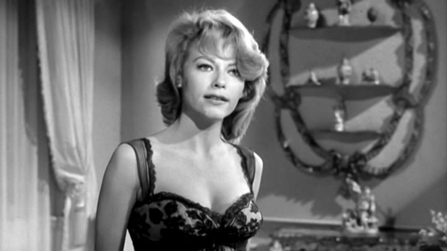 Still, it’s a workmanlike job that doesn’t get in the way of the story’s downbeat tone (Delmer Daves would have made that racetrack world a lot richer, a lot more showily “dramatic,” and a lot more vicariously sensuous…which would have seriously undercut the story). As for those “TV actors” and other B-level stars—they’re just fine here. Ralph Meeker, always best when playing a sleaze, is memorably repulsive as a vicious bully (“Whip him! Whip him! Whip him!” he yells at his own failing horse) who greasily grins, “Turning a pig into a gentleman is supposed to be your job,” to a clearly disgusted Pleshette. Provine, critically, is missing for a big middle section of the movie (a mistake in story construction that robs some dramatic tension from the movie’s final act), but when she’s on, she’s quirkily successful (and a lu-lu in slutty lingerie).
