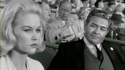 In producer/screenwriter Joseph Landon’s (The Rise and Fall of Legs Diamond, Von Ryan’s Express) script, everything—horse races and relationships—comes down to the numbers in the end. Everyone uses and gets used here in Wall of Noise, and nobody comes off clean. Provine is ostensibly set up as the “good girl” (even though we’re introduced to her sleeping naked in boyfriend Hardin’s bed), but her “right” choices are wrong in terms of her relationships: she confirms Hardin’s commitment-skittish ways by not believing in him when she doesn’t bet all their money on his last-ditch race. She plays little Bud along even though she knows he wants more, and she agrees to sleep with Oakland to pay off Hardin’s personal loan—a dubious good deed if there ever was one.