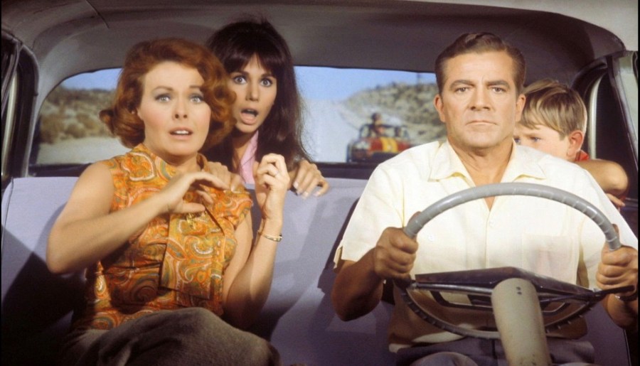 Traveling by car out in the desert, the Phillips encounter a bunch of thrill-kill punks who get their kicks out of scaring the squares. Led by adrenalin-junkie Gloria (Mimsy Farmer) and cold-as-ice rapist Duke (Paul Bertoya), these “animals,” as Tom calls them, engage in ever-increasing threats against the Phillips family, starting with a deliberately thrown beer can at young Jamie Phillips (Tim Stafford). As the punks smell a coward in Tom, they up the antes in their cat-and-mouse games, especially after learning that Tom has bought their favorite decadent hang-out, The Arena, a bar attached to the Dailey Motel that Tom now runs.