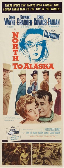 Set up strictly as a “deal picture” for producer Charles Feldman to get his then-girlfriend Capucine into a John Wayne picture (which Wayne was doing strictly for the cash, since he was close to bankruptcy, shooting The Alamo), North to Alaska didn’t even have a finished script when cameras began to roll in 1960. The original director, Richard Fleischer, jumped ship when no script was produced for his perusal, and a writers’ strike squashed any chance for the filmmakers to finish up the barely outlined plot prior to shooting. According to accounts, most of North to Alaska, then, was improvised and stretched out on the spot, during filming, with the resulting picture having quite a bit of light, fluffy charm to it, but understandably, not much substance at its core.