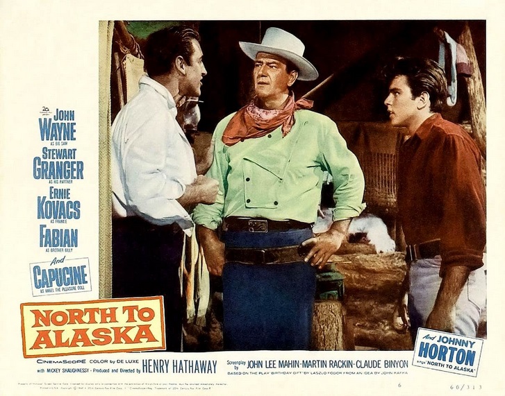 Warmly received by critics and a big hit with the public (no doubt aided by that insanely catchy title tune by the great Johnny Horton), North to Alaska, according to its director, Henry Hathaway, was conceived and shot in absolute chaos. Ironically though, in its success with ticket buyers, it helped set the pattern for many later Wayne pictures, where comedy was introduced to help smooth Wayne’s transition over to a more mature leading man icon.