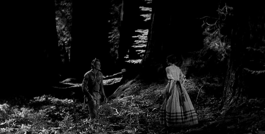 And yet, when watching The Big Trail today, its sometimes velvety black and white cinematography (a rare combination with the choice of 70mm widescreen for the western genre), its use of silent film intertitles, and with the tell-tale early talkie acting, The Big Trail has a self-reflexive patina of quaintness, of artifact in and of itself. It was an envelope-pushing technological effort in its day, recreating a past, undisturbed world that was still discernible to its chroniclers…that now plays like an faintly ancient relic. Fascinating layers of audience perception and viewing experience here.