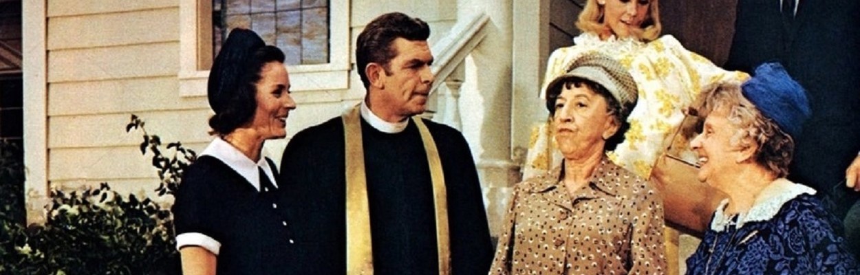 Lots of steady-laugh one-liners crop up, too, keeping Angel in My Pocket humming along. When Griffith asks Fennelly if he’s lived in Wood Falls “all your life,” Fennelly, very much alive, replies, “Not yet.”  Medford, always getting a laugh, has only to whisper “real synthetic pearls,” as she admires a fellow parishioner, for us to completely “get” her character. When Griffith, giving his first sermon, flat-out lies about what he said when he saw the town riot (inventing outrage to make the sermon more dramatic), his son Sammy yells out to the unamused congregation, “I didn’t hear him say that, Mama!” (what parent couldn’t relate to that moment?).