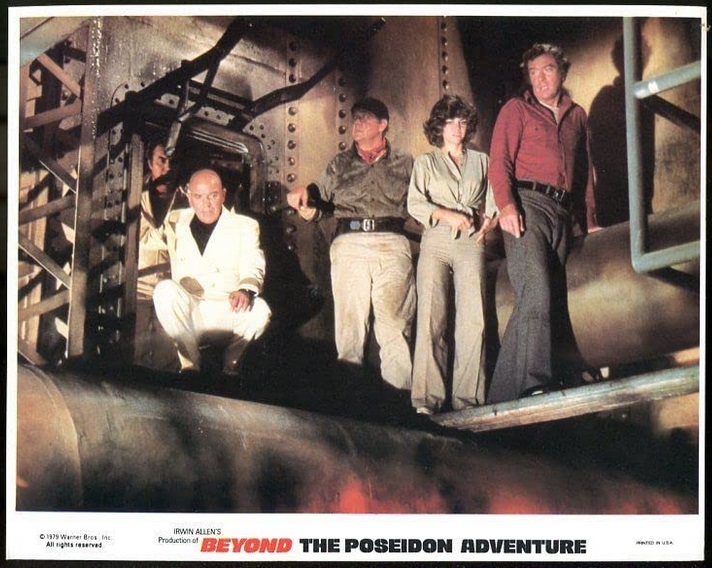 Despite Gallico dying in 1976, the book Beyond the Poseidon Adventure was eventually published in 1978, but according to what I’ve read, Allen left out quite a bit of Gallico’s storyline, as he did with the first novel. Pre-production on Beyond took over a year, before cameras hurriedly rolled in September, 1978, to meet a rushed May, 1979 premiere deadline (in order to take advantage of the start of peak summertime moviegoing). With a budget half the size of the previous year’s flop, The Swarm (no surprise there), Beyond the Poseidon Adventure opened to not-bad numbers on May 20th, 1979 (it won the weekend with over $5 million—an entirely respectable number back then), before absolutely wretched word-of-mouth and subsequent summer blockbusters Alien, Rocky II, Moonraker, and The Amityville Horror combined to drive it out of theaters in a matter of a few short weeks.