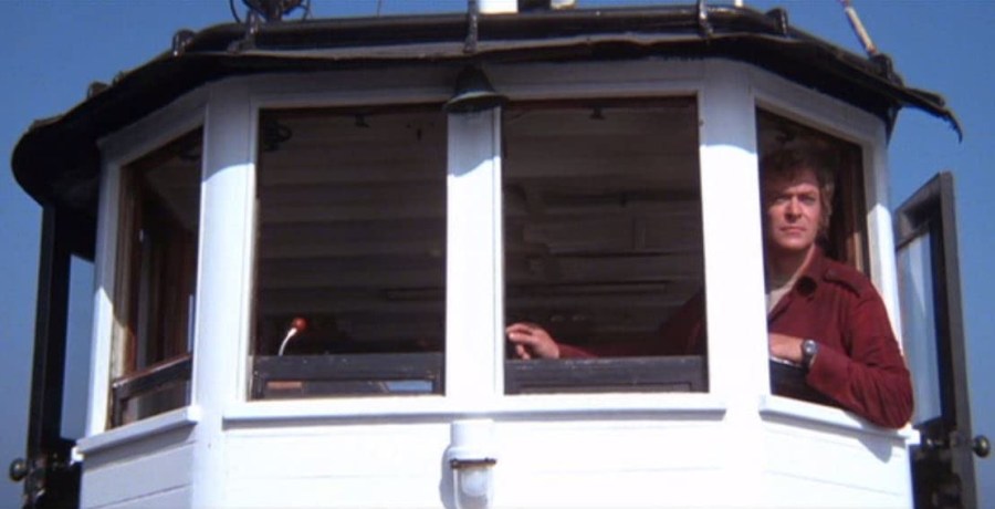 Once you become acclimated to Beyond the Poseidon Adventure‘s surreal, unrealistic environment, you begin to notice how the characters and their motivations are just as patently artificial, in pro scripter Nelson Gidding’s (The Haunting, The Andromeda Strain) woeful script. We never buy the central buddy relationship of Caine and Malden as salty sailors who go way back together (what English-accented French tugboat operator wears Farah dress slacks and a fitted dress shirt…that somehow always manages to stay tucked in?), while Fields’ stowaway is as arbitrary (and thin) a story construction as you could possibly get in this type of genre outing—a genre notorious already for its usual quota of convenient, two-dimensional characterizations (we don’t get told who she is, where she comes from, or how, believably, she convinced Malden to give her a ride to North Africa…or France…or wherever they’re going).