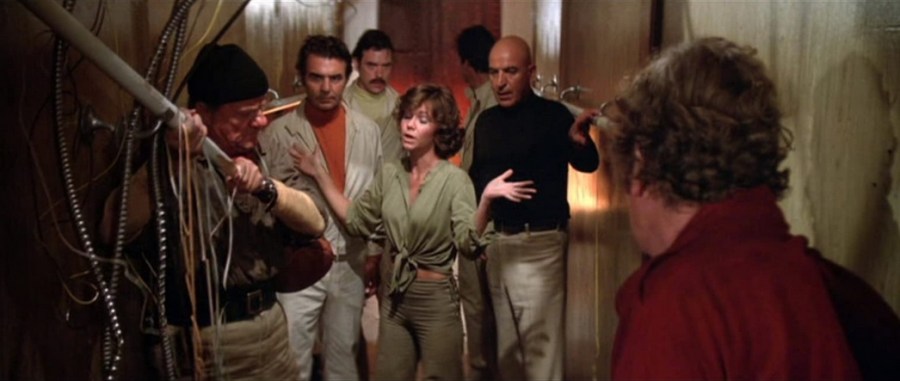 As for Telly, well, as I’ve written before: he’s a god…but it’s depressing as hell to see this criminally underutilized actor so terminally bored (and boring) here, recycling his OHMSS Blofeld turn to absolutely no effect, while he poses and preens, slurring and spitting out impossible lines like, “I’m Dr. Stefan Svevo,” (he makes it sound like something from Dr. Seuss), and “The one marked ‘Sprague Pumps.’ Bring it up…NOW!” (I still yell that at the wife when I want more oatmeal). The rest of the cast is left to their own devices; if they look slightly ill-at-ease, as well, perhaps it’s because they saw the reception their director’s previous disaster epic, The Swarm, received that summer…and the notices that movie’s cast received from the gleefully vengeful critics.