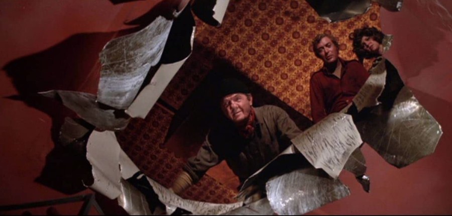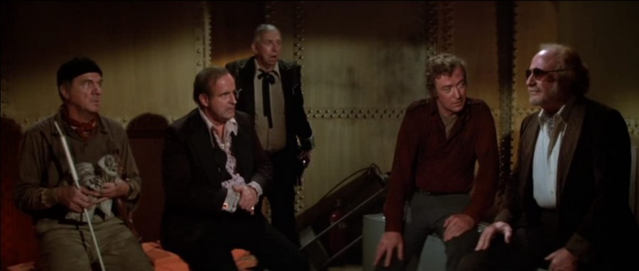 Even better, after the silliness is over of Caine and Savalas ignoring the insanity of boarding a sinking vessel that could slip below the surface at any second, once they’re inside what looks to be the sickeningly lurching Poseidon, everything inside magically levels out on the horizontal. No tilting hallways, no rocking waves. Every set-up feels like it was shot not on a boat, but deep, deep down in a rock-solid fourth-level sub-basement. It ain’t movin’.