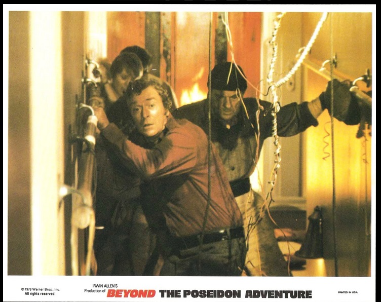 No, despite Gidding’s and Allen’s laborious attempts to make “meaningful” Beyond the Poseidon Adventure‘s action scenes, by populating them with characters we “care” about, they fail. Miserably. And they’re not helped by the cast. Decidedly declasse compared to the first movie’s roster of stars (the original had 5 Oscar winners, Beyond has 2…for supporting turns), Beyond‘s anchor, Michael Caine (and he’s one of my favorites, so relax), just isn’t a match for Hackman or McQueen or Newman in terms of the physical requirements needed for this kind of role.