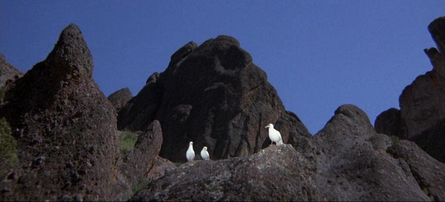 Watching Jonathan Livingston Seagull today, I pretty much had the same reaction I had seeing it 50 years ago. It’s a spectacular-looking movie, with images of the California coast battered by massive waves rivaling anything I’ve seen on film. Equally amazing are the scenes of Jonathan, flying around the various locales (cinematographer Jack Couffer rightly was nominated for an Academy Award here). There’s one shot in particular, at the beginning of the movie, where the helicopter camera swoops around a jagged outcropping of rocks, with Jonathan perfectly alighting on it at just the right moment as the copter goes by—what an amazing shot to capture. Numerous evocative sequences like that are caught in Jonathan Livingston Seagull, including a particular favorite where Jonathan tentatively makes his way across a sea of red sand in the desert.