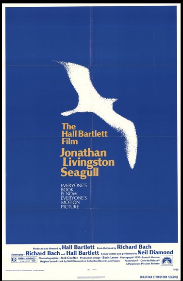 Does anybody under 50 even know about Jonathan Livingston Seagull anymore, the 1970 pseudo-Christian/Eastern philosophy hodgepodge parable by Richard Bach that, through word of mouth, became a mammoth best seller? To people who grew up during the early Seventies, a tattered blue paperback copy of Jonathan Livingston Seagull was as iconic a symbol of the times as macrame fern holders, waterbeds, big orange incense candles, earth shoes, and a VW Microbus parked out front. If that rather ghostly white image of Jonathan adorning the book cover wasn’t sitting on the back of someone’s toilet, it was resting on a cinderblock-and-board bookshelf, nestled safely between cherished copies of Love Story and the Collected Poems of Rod McKuen (with two Pet Rocks for bookends). Everybody read that stupid goddamn book.
