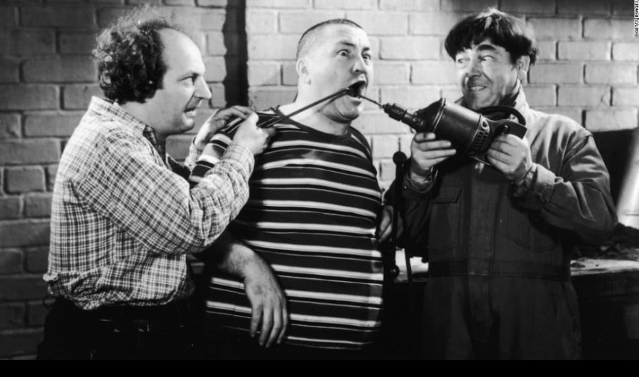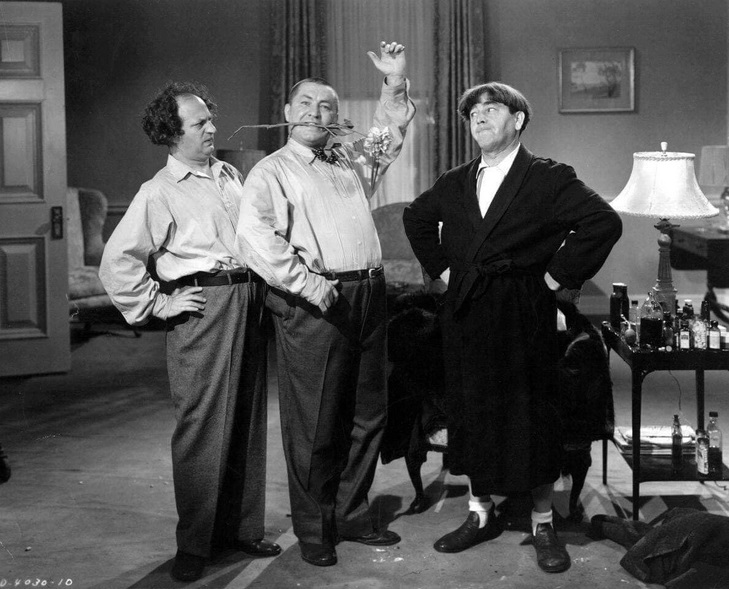 Other vintage comedians whose acts are still relatively “safe” within the confines of our hijacked pop culture, are falling fast off the national radar…if they haven’t already disappeared altogether. While once-great big-screen comedy talents like Hope and Crosby, Abbott and Costello, Martin and Lewis—welcomed endlessly repeated visitors to the TV sets of my generation and before—are now slipping off into pop culture oblivion, the Stooges march on, never really leaving heavy syndication on TV since the 1950s (MeTV, the country’s most popular “classic television” channel, features an hour of the Stooges every Saturday night). What’s the appeal, after all these years?