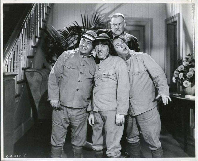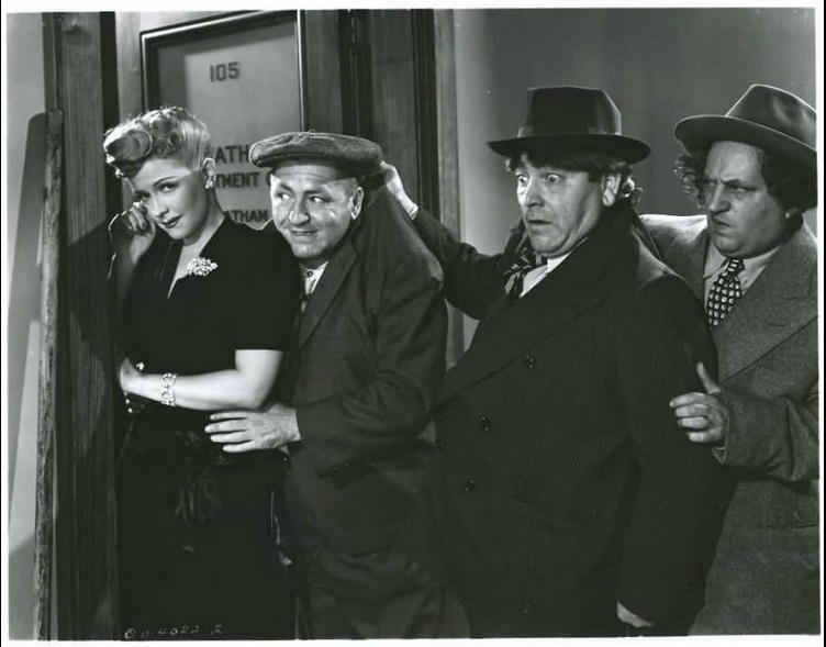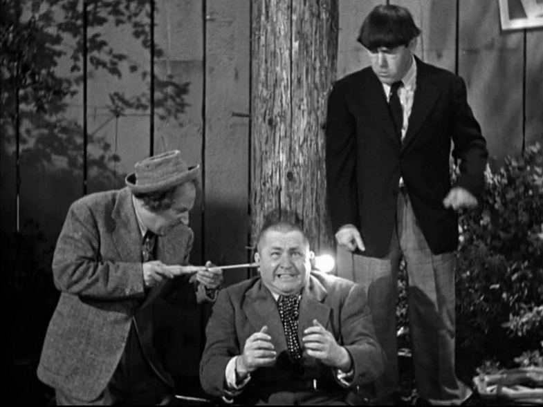 A strangely lifeless Stooges short, it sports one good line from Curly (“Don’t you dare hit me in the head! You know I’m not normal.”) but the early “flubber” sequences are ill-timed and not particularly well set-up, while the ending, using stock footage from 1940’s Boobs in Arms seems to indicate the writer, Clyde Bruckman, didn’t know how to end the short.