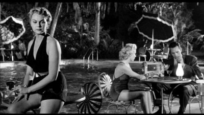 And certainly the funniest scene in the movie has veteran weasel George E. Stone (just terrific) whining on and on to a slightly bemused, passive Sullivan, who just looks at him, blinking, until Stone finishes, prompting stone-faced Sullivan to flatly respond to this epic gripe, “Yeah…good night, Louie,” before turning away. All of the performers are just right here: Sullivan is pleasingly brutal; slimy Adler alternately confident and cowardly; tough-over-sensitive Garland excellent at getting her ass royally kicked (convincing makeup for that); Baer agreeably callow and weak, and Jergens absolutely perfect as the past-it chippie with bitter poison in her veins. The Miami Story may have missed several opportunities to become “great”…but this sleazy potboiler is never less than very entertaining.