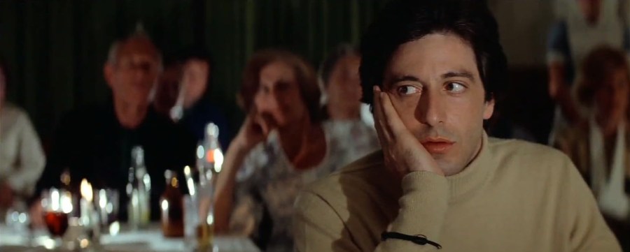 The absolute nadir of his career (and no, it wasn’t Cruising, which looks better and better every year, and no, don’t you dare say, “Dunkachino”), the lowest point he has ever sunk onscreen, comes here when he does his Mae West imitation—yes…Mae West—for Keller. Is he indeed actually imitating Mae West, or simply “coming out” to then-real life girlfriend Keller (by the look on her genuinely troubled face, I’d say the latter). Pacino looks so mortified, so internally frozen and paralyzed with embarrassment, it’s a wonder he allowed Pollack to film this scene (so what if Pollack was also the producer. Pacino was the A-list star: one phone call to Columbia and Gordon Douglas would have been on the first plane to Paris…and Bobby Deerfield would have been a hellava lot more entertaining, I would imagine).