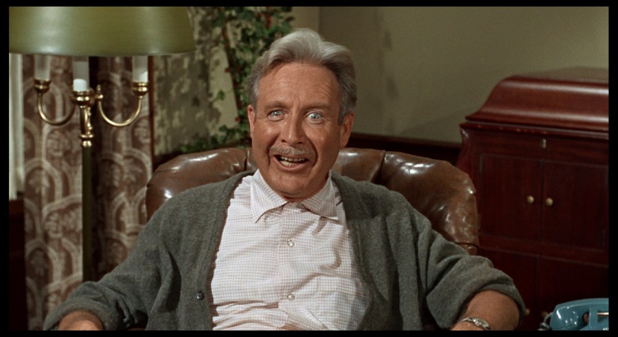 And later, when he pathetically admits to lying about his war-time exploits, only to include his son in his own self-hatred (“No, son…we’re just a couple of losers,” he says with disgust, when finding out Roy’s a janitor), we the viewer may laugh at first at O’Connell’s perfect delivery and scary-bright eyes filled with delusion and sadness, but afterward we wonder why any son would go to such lengths to get his approval. It’s easy not to think too much of this kind of stuff while we’re laughing at Knotts’ antics, but this rather serious, sad undertone of total failure and familial failure, runs unmistakably throughout The Reluctant Astronaut. And at times…it’s a rather surprising downer.