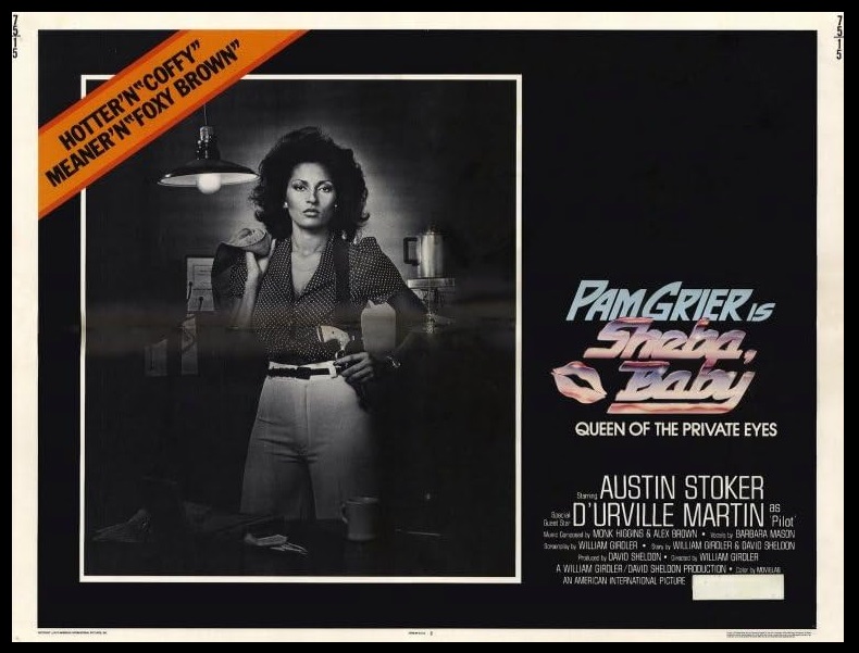 Is it Black History Month yet? Do they still call it that? Well, I’m starting it right now, getting inspired by gorgeous Pam Grier’s knobs, in the low-key entertainment, Sheba, Baby, the 1975 American International Pictures blaxploitation hit directed by William Girdler, and starring Pam Grier, Austin Stoker, D’Urville Martin, Rudy Challenger, Christopher Joy, Dick Merrifield, and Charles Kissinger.