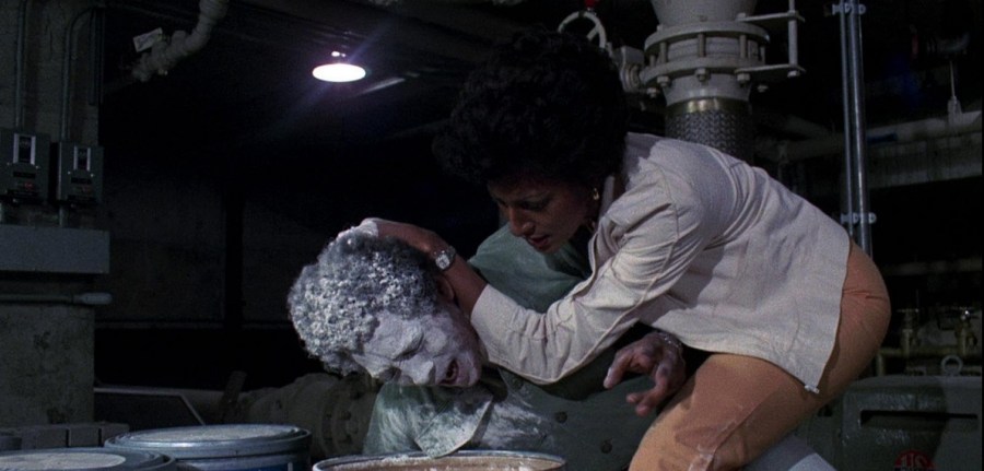 Deliberately withhold them, and you can’t help but disappoint your core audience (according to some, a nude scene was shot and released in the European version…but nobody has ever actually confirmed that). No matter how sexist it may read (particularly after the above paragraph), frankly it’s a waste not seeing Grier the way we saw her in Coffy and Foxy Brown: partially nude.