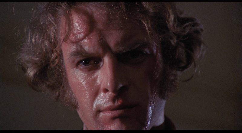 Castellari and his co-screenwriter Tito Carpi (Leo Anchoriz is listed as contributing, also, but apparently it’s strictly a tax shelter credit) try to mix up audience expectations (although not as completely as Peckinpah would do with the similarly-themed Straw Dogs, which would be released later that same year) by making the Anna character a tough-cookie whore (Quill calls her one, and she doesn’t deny it). She will gladly sell out Peter to save her life (as well as offer Quill a free show of her body as she showers, as further enticement before trying to escape), only to have Peter show genuine feelings for Anna when she’s mortally wounded at the end of the movie.